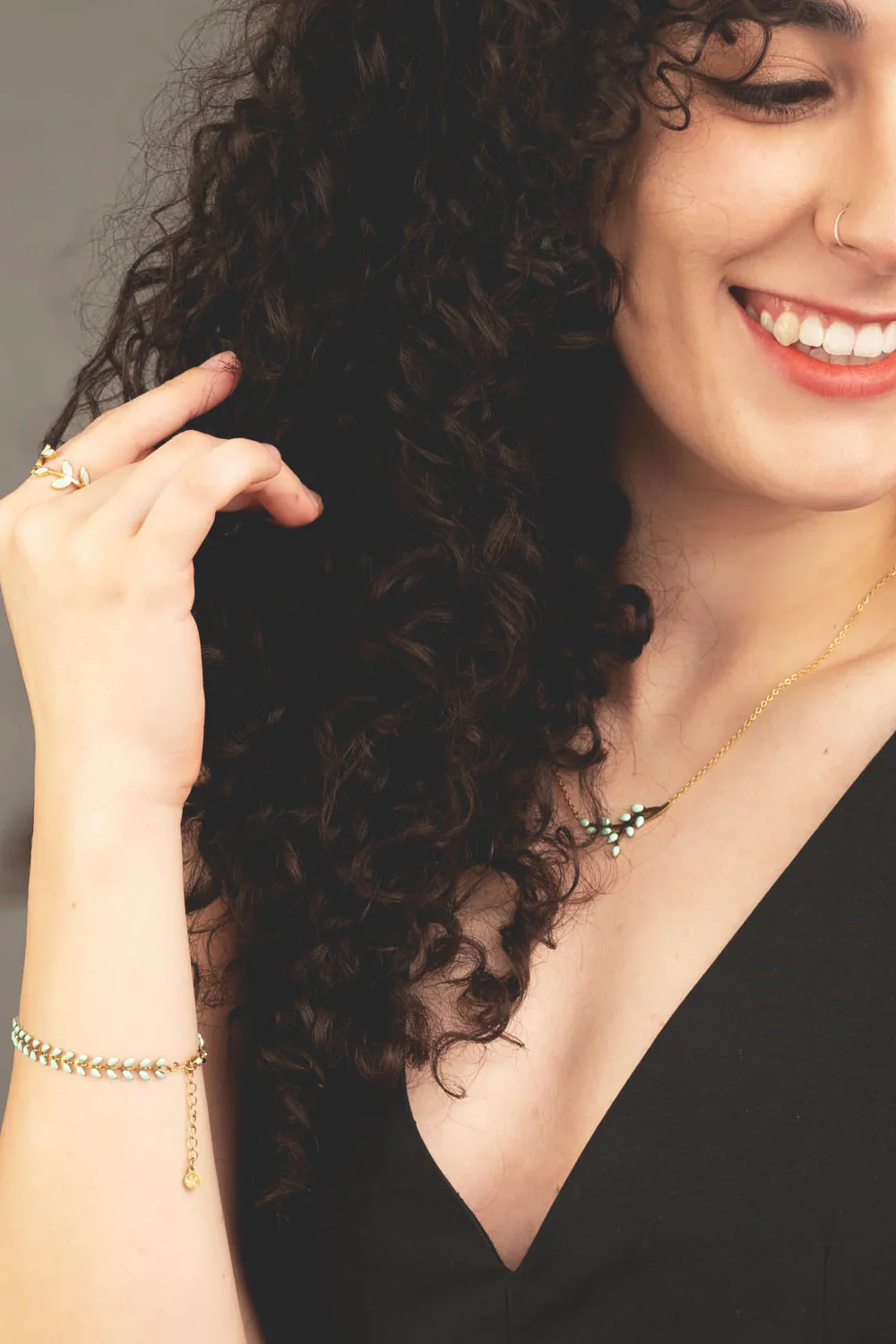 - 14k gold plated stainless steel chain with mint-colored enamel